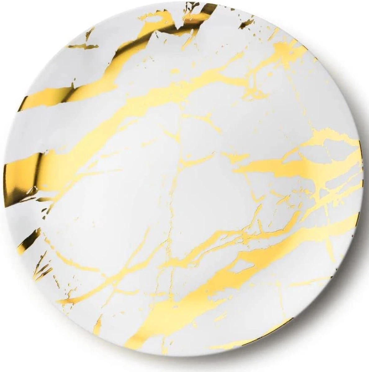 50 Marble design Herbruikbare feest borden – goud en wit Premium borden – verjaardag, feesten, bbq enz – wegwerp borden