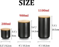 Voorraadpotten Keramiek – Suikerpot 3 Stuks – Deksel Bamboe – Luchtdict Voorraadbussen Potten – Wit