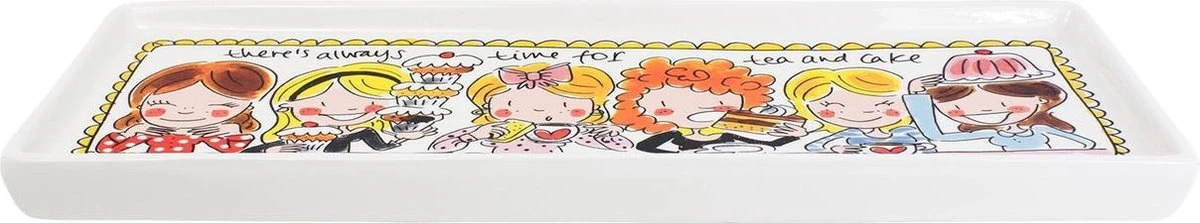 Serveer de lekkerste cakes of taartjes op deze nieuwe vrolijke en kleurrijke cakeschaal uit de Blond Amsterdam Even Bijkletsen lijn. De opvallende en kleurrijke illustraties kenmerken de ‘Even bijkletsen’ lijn van de twee vriendinnen uit Amsterdam: een servieslijn met een knipoog.
