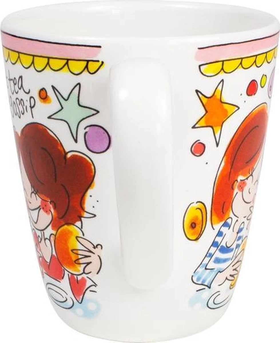 Deze vrolijke Blond Amsterdam mok is onderdeel van de welbekende Even Bijkletsen serie en heeft een inhoud van 350 ml. De rand van de beker heeft een roze kleur, wat onderdeel is van deze vernieuwde lijn. De mok staat vol met herkenbare en vrolijke illustraties en aan de binnenkant staat een oranje ster. De aardewerk mok is perfect voor een heerlijke kop koffie of thee. Ontdek de rest van het vrolijke Blond Amsterdam servies en alle andere koppen en mokken in onze webshop.