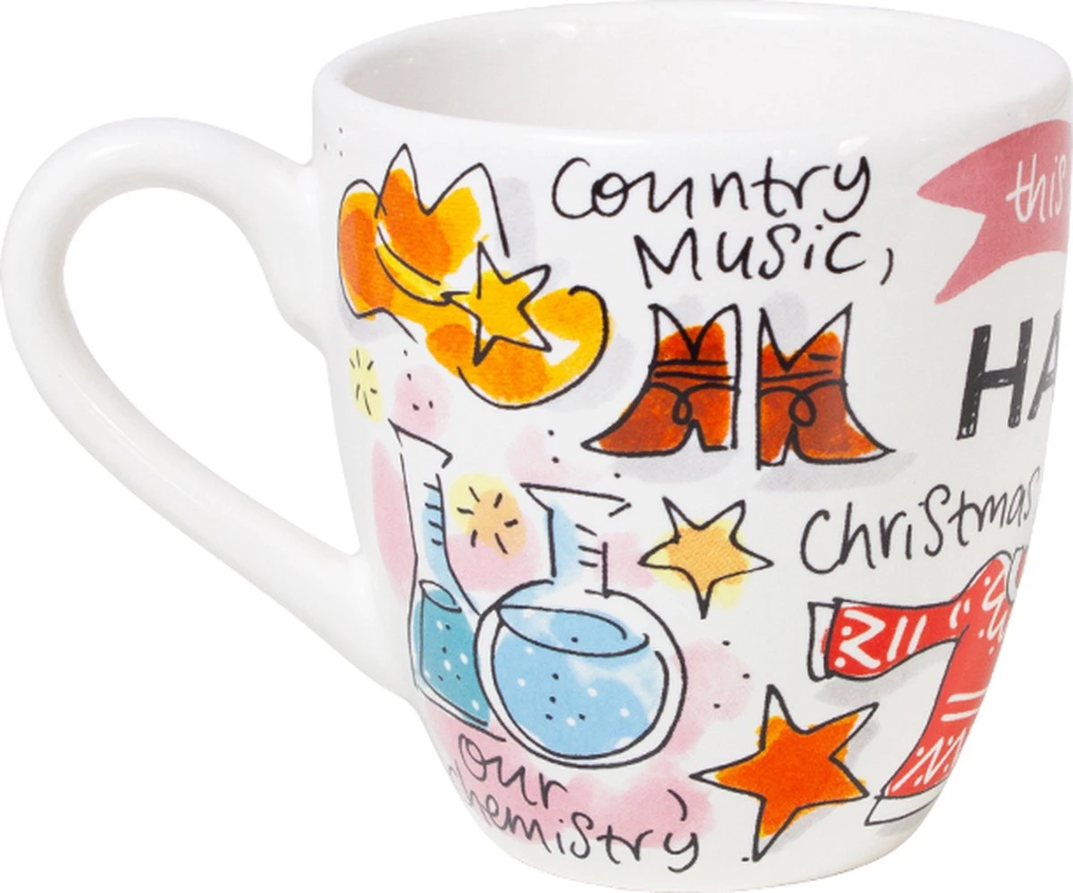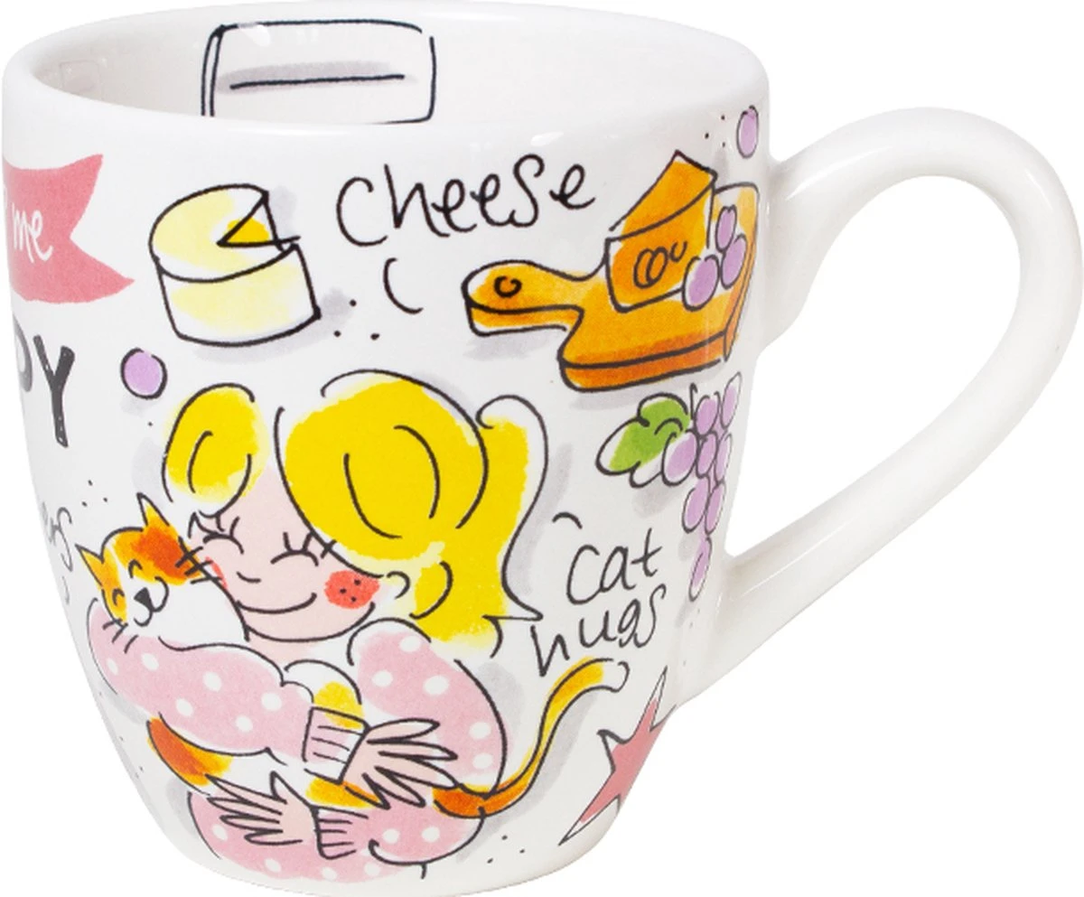This make me happy! Deze vrolijke minimok, maakt jouw tafel nog gezelliger! De opvallende en kleurrijke illustraties zijn in het thema Happy ontworpen. Op de minimok staan allemaal grappige quotes die jou blij maken. Zoals op deze beker cat hugs, cheese en Christmas jumpers. De minimok is leuk te combineren met de andere nieuwe Happy items.
