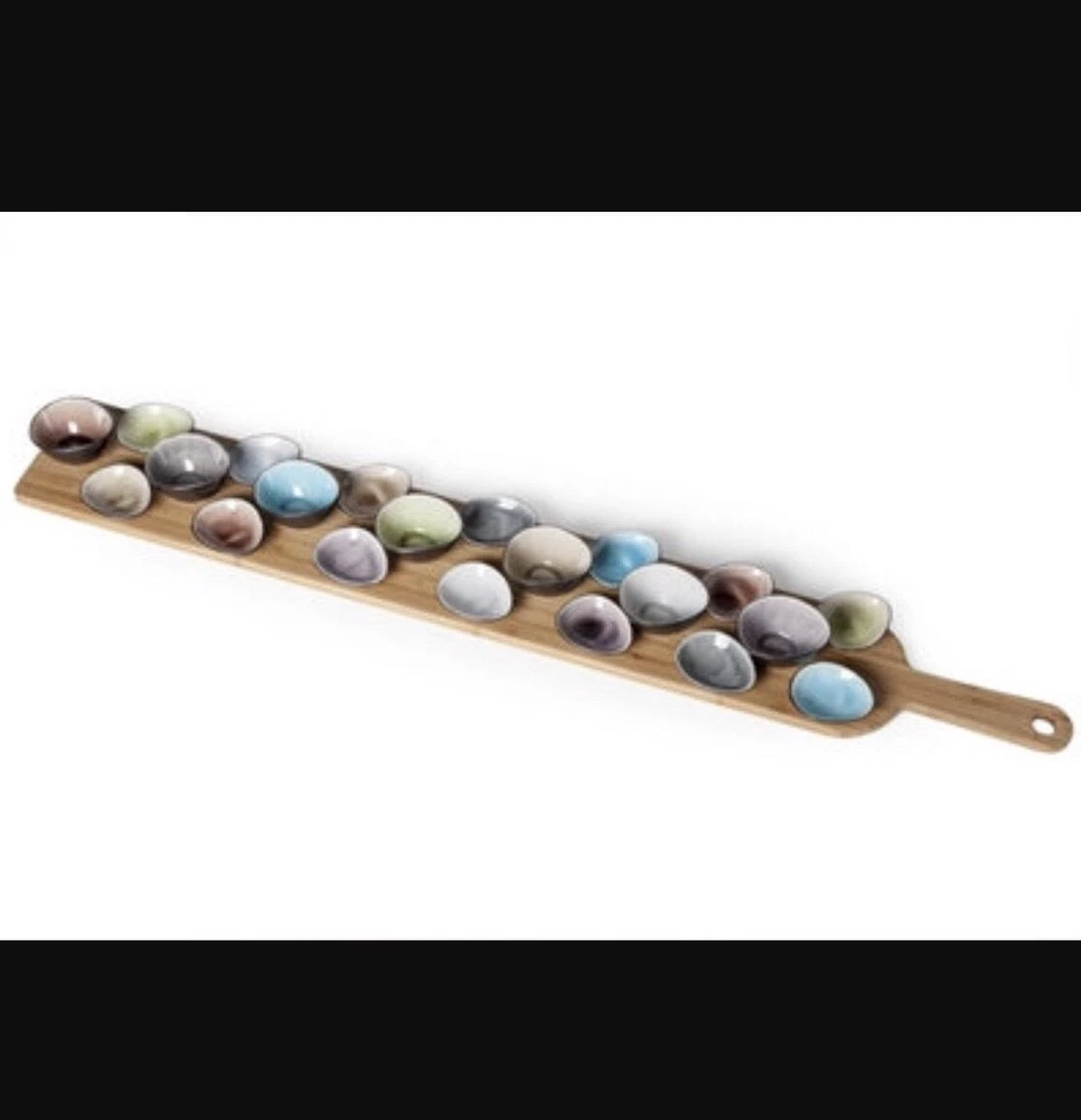 “Organische Streetfood Festival bordjes van Cosy&Trendy, een bonte mengeling van speciale tinten. Deze bordjes zijn geschikt voor aperitiefhapjes, tapas, fingerfood. 10 kleuren die perfect passen bij het kleurrijke voedsel van verschillende continenten dat doorgaans bij foodtrucks op de kaart staat.