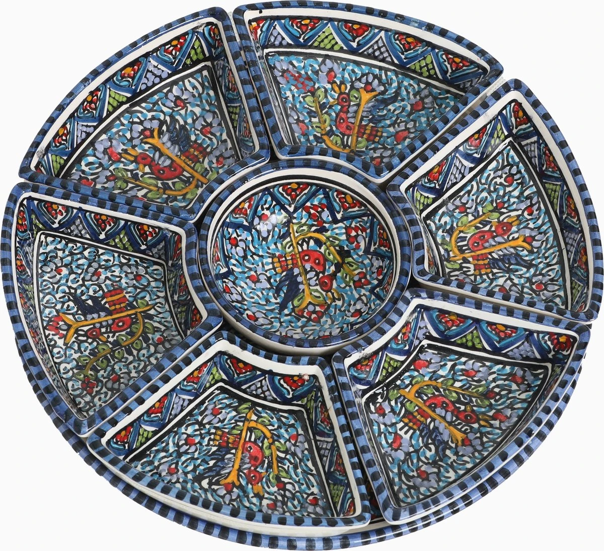 De serveerschaal van CRAFLAIR is traditioneel met de hand gemaakt ambachtslieden. Het patroon is uniek getekend en met de hand beschilderd op de tapas schaaltjes.
