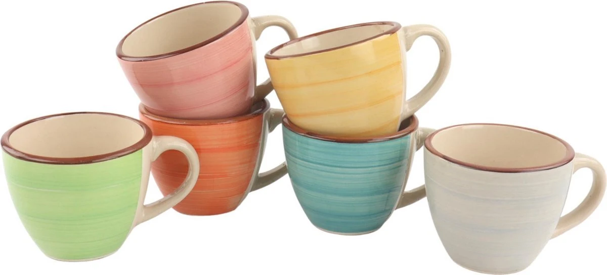 Orange85 Espresso Kopjes – Set Van 6 – Met Oor – 160ml – Meerdere Kleuren – Pastel – Aardewerk