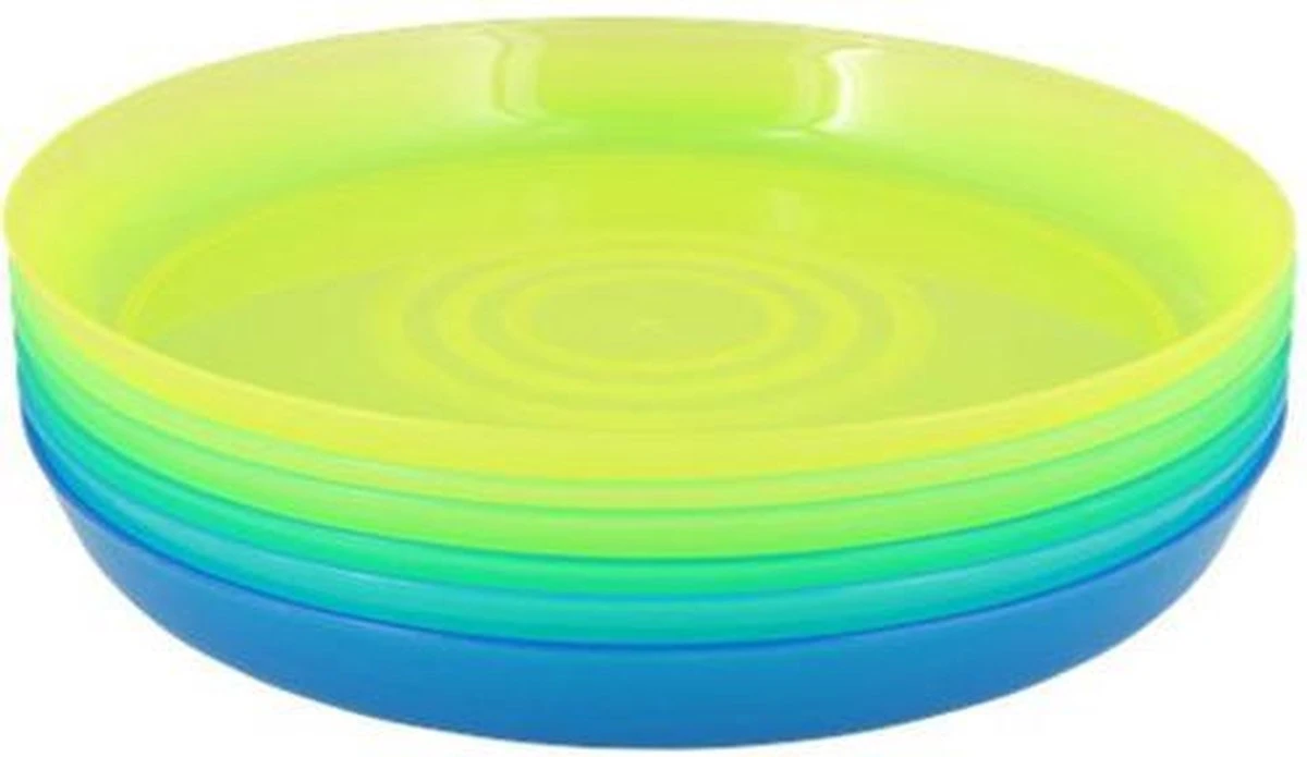 Een prachtige set van zes ronde borden. Door de leuke kleuren en een strak design is dit kinderservies eenvoudig en speelvol.