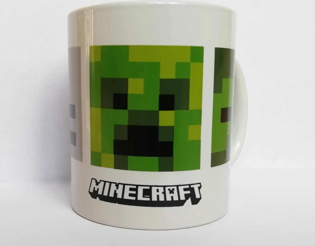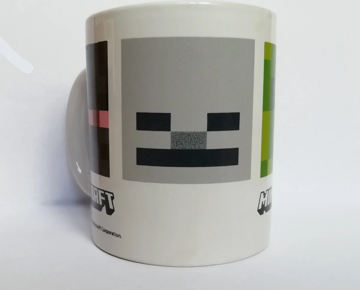 Minecraft licensed kleurrijke keramische mok / mug / drinkbeker met afbeeldingen van Zombie, Creeper, Skeleton en Enderman en het Minecraft logo.