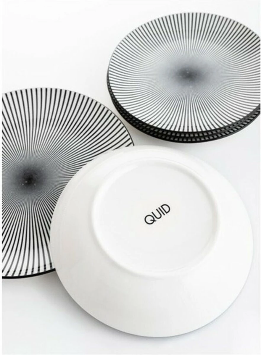 Met deze bordenset ziet jouw gedekte tafel er stijlvol uit. De borden zijn gemaakt van porselein en kunnen het beste met de hand afgewassen worden. De set bestaat uit 6 soep-, diner- en dessertborden met een hip zwart-wit printje.