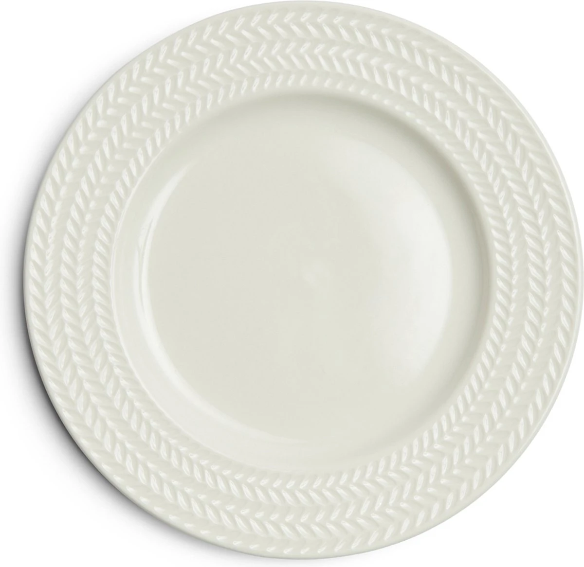 Lekker wakker worden met je cracker of boterham op een ontbijtbordje van de RM Bellecôte serviesserie. Mooi versierd met een visgraat randje, ingewerkt in het keramiek. Rustig decor, voor optimaal genieten van je voedsel.