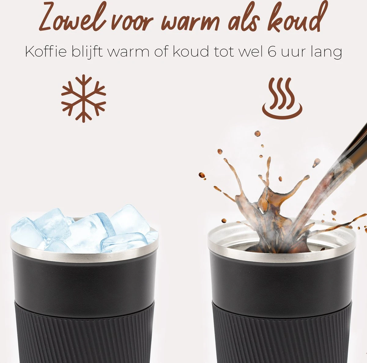 Deze koffiebeker is niet alleen gemaakt van voedselveilig roestvrijstaal (RVS), hij heeft ook nog een dubbele isolatie waardoor je drankje tot wel 6 uur warm of koud blijft!
