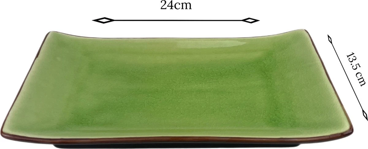 Eet je sushi in Japanse stijl met dit prachtige servies in authentiek groen. Met de elegante vormen, is het servies traditioneel Japans en is het afgewerkt met een hoogglans om de mooie kleuren te accentueren. Het maakproces van elk stuk servies is uniek, wat soms kleine kleurschommelingen tot gevolg heeft. Het servies is zeer geschikt voor dagelijks gebruik of voor speciale gelegenheden.