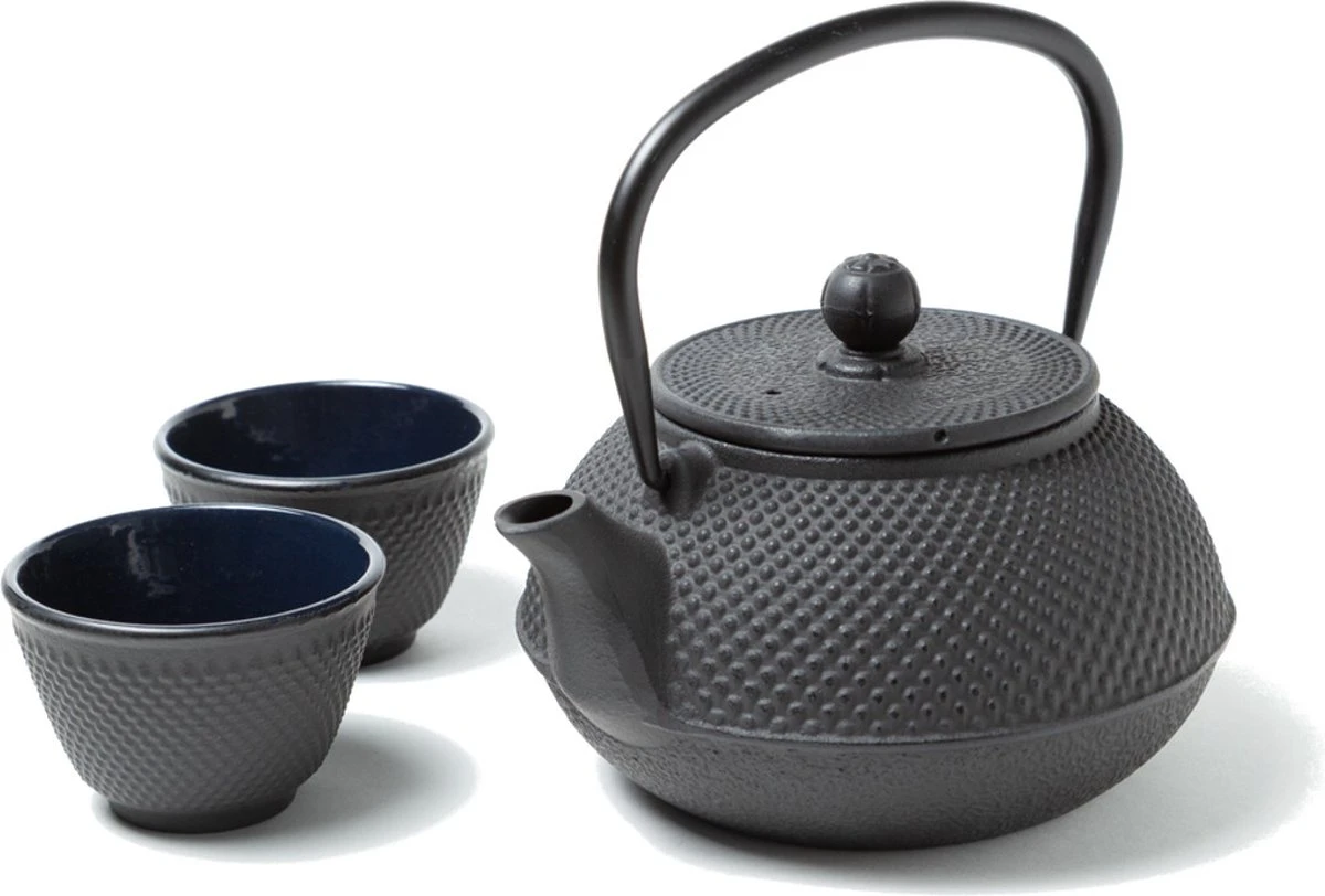 COMPLETE THEESET VOOR JE EIGEN THEE-RITUEEL – thuis ontspannen genieten van verse aromatische thee? Set thee volgens Aziatische traditie. In onze gietijzeren theeset ontvang je 1 theepot (800 ml) met uitneembare roestvrijstalen theezeef, 2 theekopjes (elk 120 ml) en 1 onderzetter (Ø 13,5 cm) in authentiek Japanse stijl. De set is verpakt in een stijlvolle geschenkdoos: het perfecte cadeau voor gepassioneerde theeliefhebbers.
